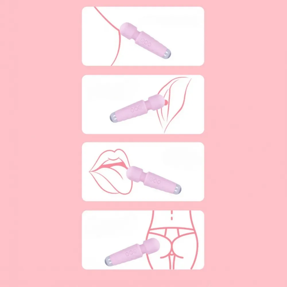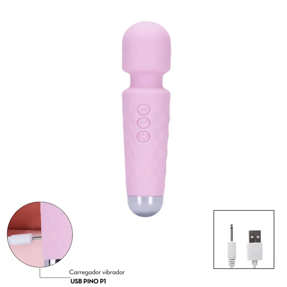 Mini massageador varinha mágica com toque suave e aveludado com detalhes metalizado.