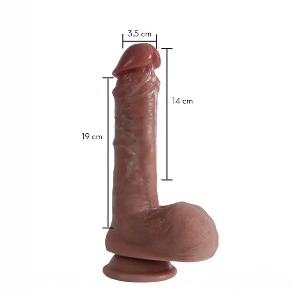 PRÓTESE PENIANA REALÍSTICA 19CM COM VENTOSA REVESTIDA COM SILICONE LÍQUIDO